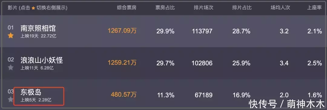 当然了,现在为这部电影买单的观众也并不多。通过最新的票房数据得知,目前《东极岛》已经上映5天,票房还不到3个亿,排片占比落后《浪浪山小妖怪》一大截,上座率更是低得可怜。